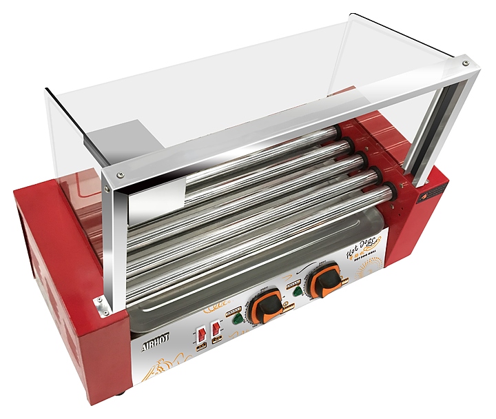 Гриль роликовый AIRHOT RG-5S с защитным экраном – это удобный аппарат для приготовления хот-догов. Он идеально подходит для обжаривания сосисок, колбасок, сарделек и мясных или рыбных палочек. Каждый ролик нагревается от собственного тэна.