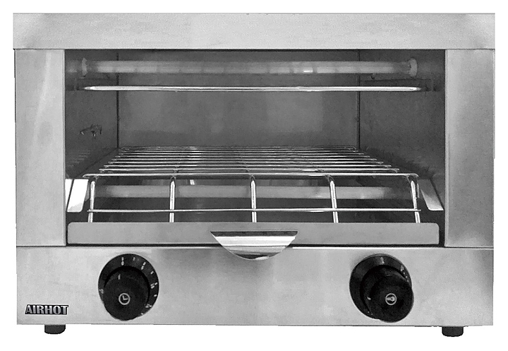 Гриль-тостер Саламандра AIRHOT HST-250 предназначен для обеспечения равномерного разогрева и прожарки готовых к употреблению кулинарных изделий (сэндвичей, бутербродов, хлебобулочных изделий, пицц и многих других кулинарных шедевров) в кафе, барах, ресторанах, точках общественного питания. Модель оснащена 2-мя переключателями для регулировки температурного режима и таймером на 30 минут без возможности автоматического отключения.