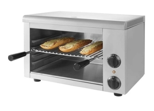 Гриль-саламандра GASTRORAG AT-938E электрический, настольный, закрытый с 3 сторон, терморегулятор (50-300 С), таймер (0-15 мин), 1 полка-решетка с 4 положениями по высоте, сливной поддон, материал корпуса - нержавеющая сталь.