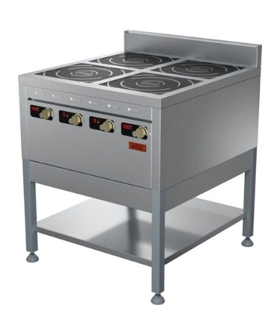 Напольная индукционная плита с четырьмя конфорками модели ПЭИ-0,42С от компании «ПРОММАШ» идеально подходит для использования в общественном питании как отдельно, так и в составе технологических линий.