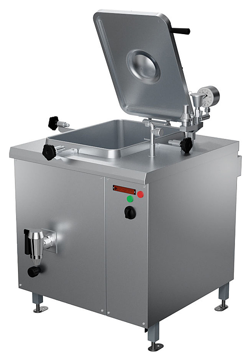 Котел состоит из прямоугольного варочного сосуда и внешнего металлического корпуса с негерметичной крышкой. Каркас выполнен из крашеного металла, а передняя облицовка и рабочий стол — из нержавеющей стали.